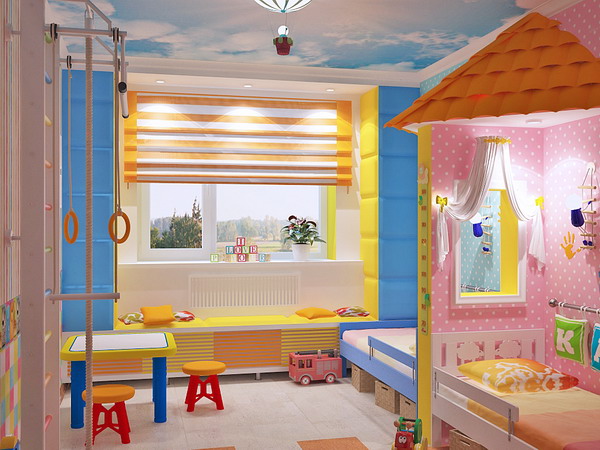But this room is not only functional, but also very cute: bright interior paint is so pure that looks like a real rainbow.